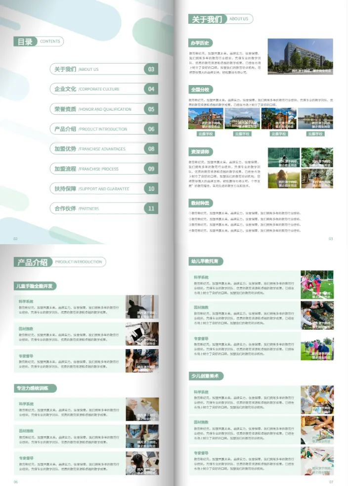 - 具體內容:涵蓋品牌理念、課程體系、教學特色、師資力量、加盟支持、市場前景等。