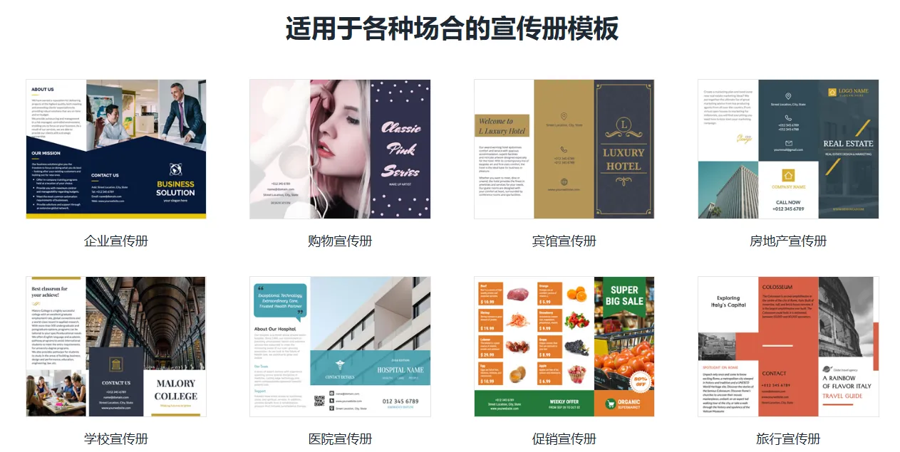 - 提供了多種宣傳冊風格模板,包括產品展示、企業介紹、活動宣傳。