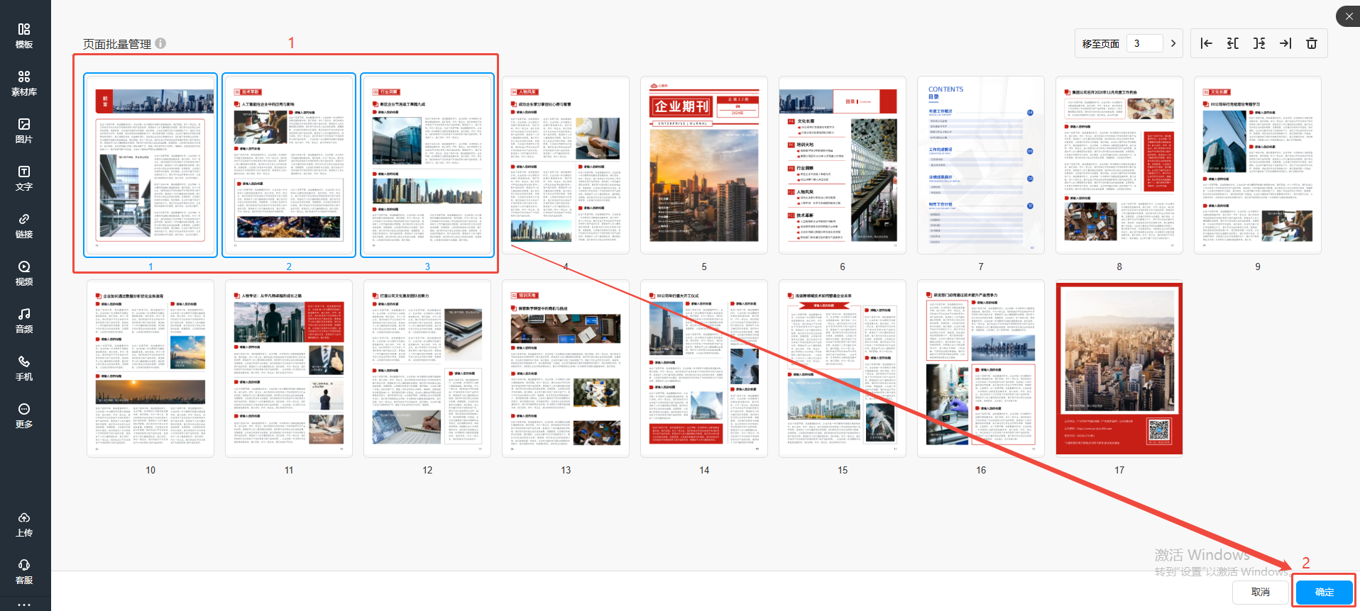 如果在編輯電子畫冊的時候需要同時移動較多頁面時,可以使用批量管理頁面的功能。