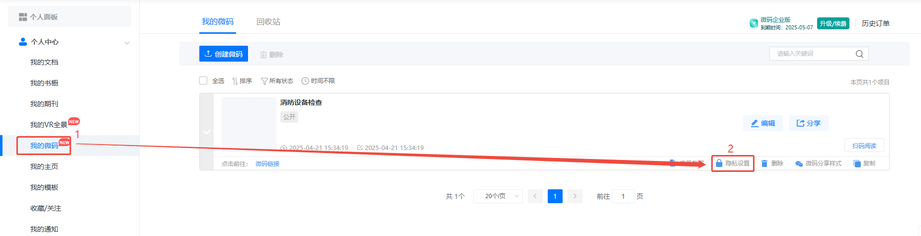 點擊【我的微碼】,選擇需要設置密碼的微碼,點擊【隱私設置】,打開【限制訪問IP】。