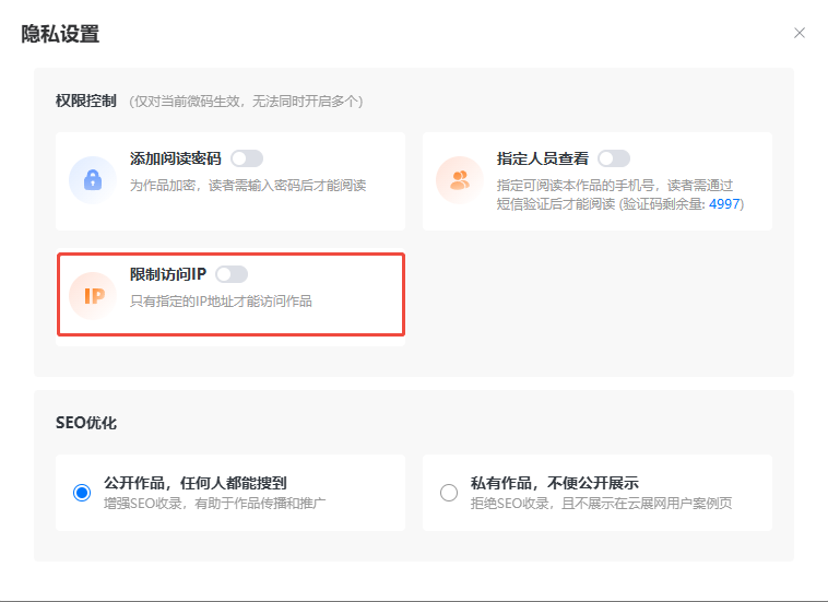 此功能可以給微碼設置IP白名單,只有讀者的網絡IP地址在白名單內才可以觀看微碼。