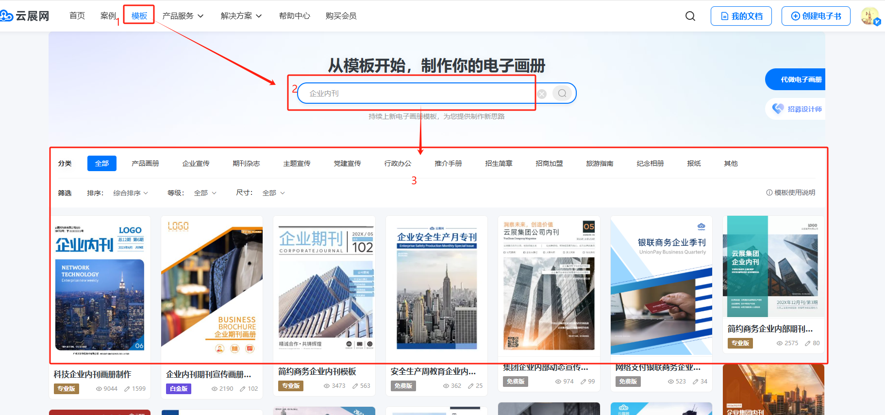 (1)在【模板】頁面,檢索關鍵詞選擇一款心儀的模板,點擊【立即使用】