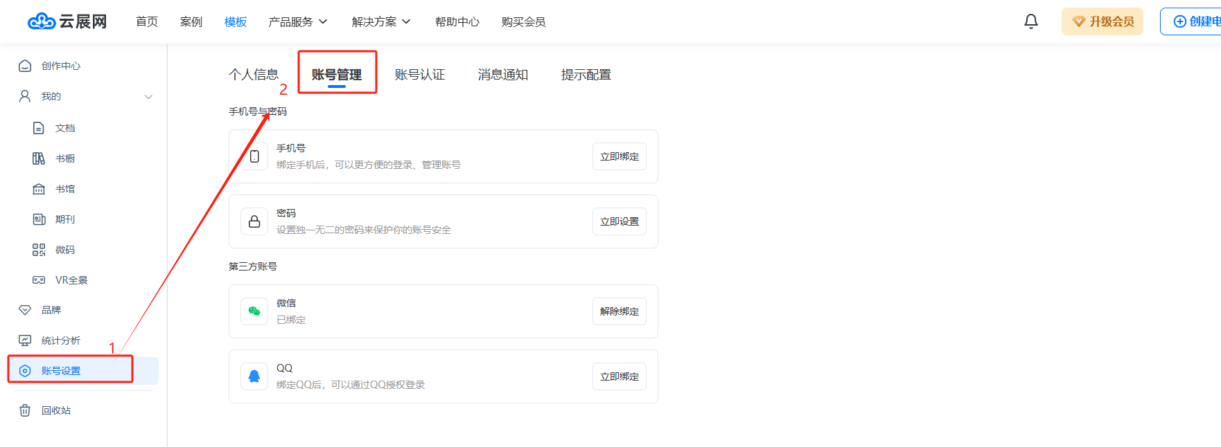 在左邊菜單欄,點擊【賬號設置】,然后點擊【賬號管理】打開