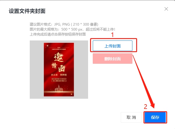 (3)點擊【上傳封面】上傳圖片,點擊右下角保存。