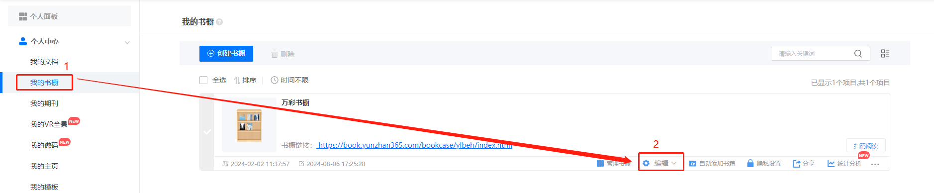點擊【我的書櫥】找到對應書櫥,點擊【編輯】,進入編輯界面。