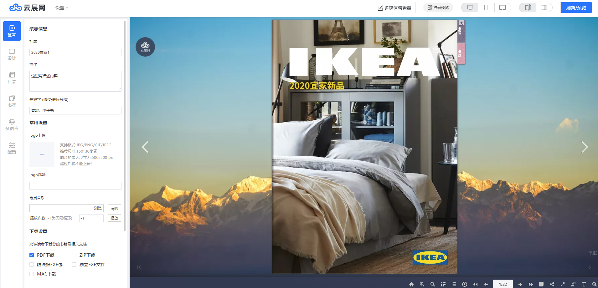 管理、修改電子雜志設置 創(chuàng)建雜志上傳審核完畢之后,需要更改雜志設置,可以在登陸賬號后,鼠標放在云展網右上角的頭像處,點擊“我的文檔”,就能見到自己上傳的書本了。 下面請看下紅框中的編輯按鈕,就是用于修改書本配置的: 編輯雜志:上傳好的雜志可以通過編輯雜志更改各項功能,同步預覽各種設置,更改雜志下載格式以及切割功能。具體功能請看編輯雜志功能介紹。