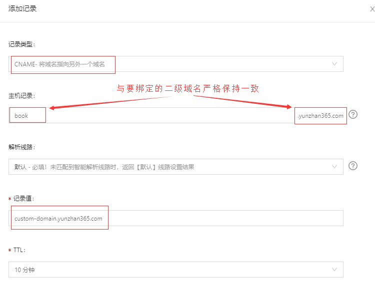 2)域名解析,添加一個(gè)記錄指向云展網(wǎng):custom-domain.yunzhan365.com