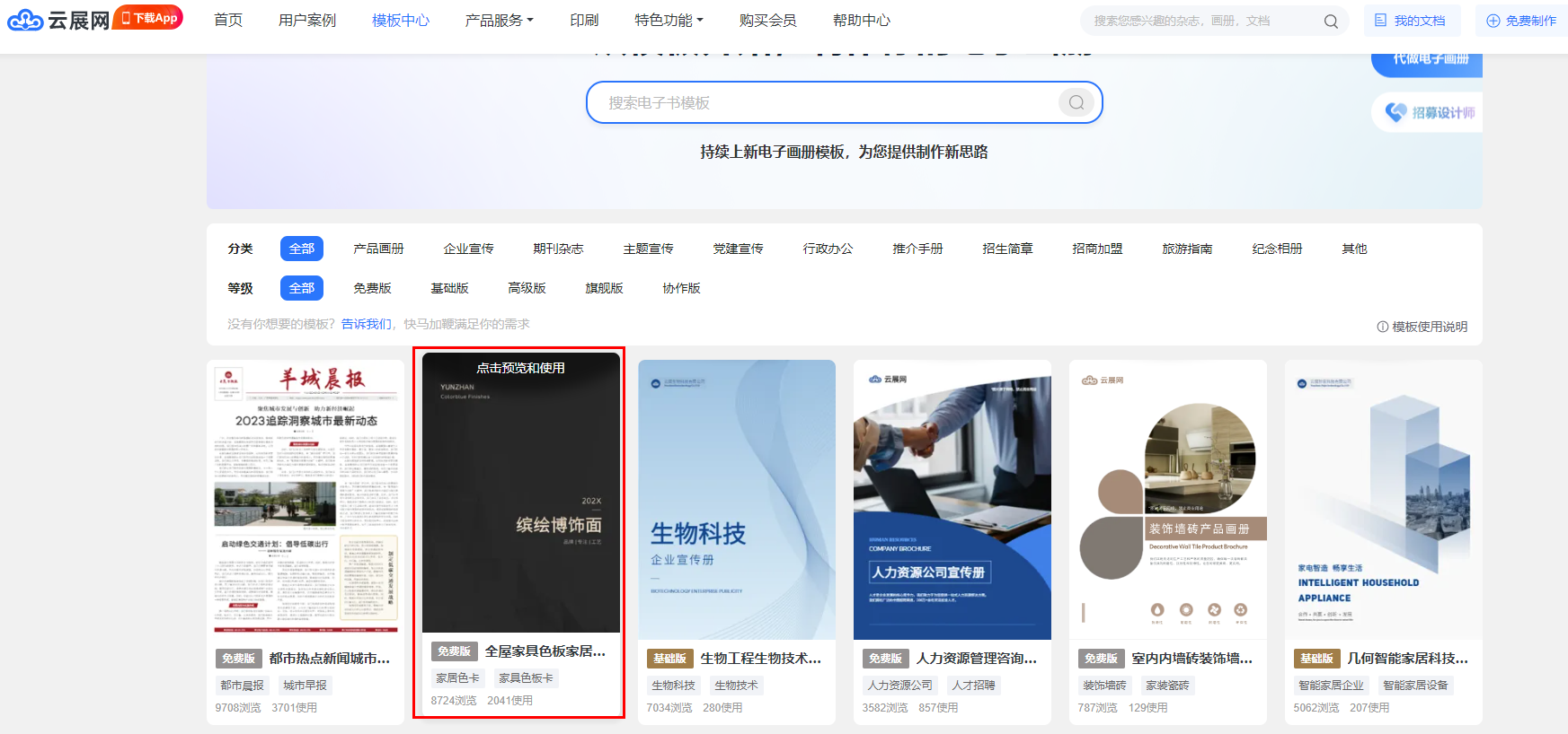 單擊 點中 心儀模板,點擊【立即使用】。