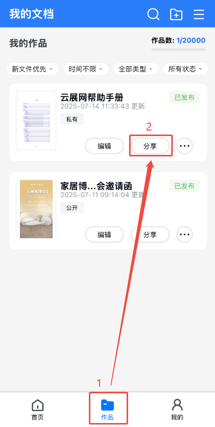 點(diǎn)擊【作品】,然后點(diǎn)擊對(duì)應(yīng)電子書的【分享】,最后點(diǎn)擊【書籍鏈接碼】,即可將電子書的二維碼保存到手機(jī)相冊(cè)上。