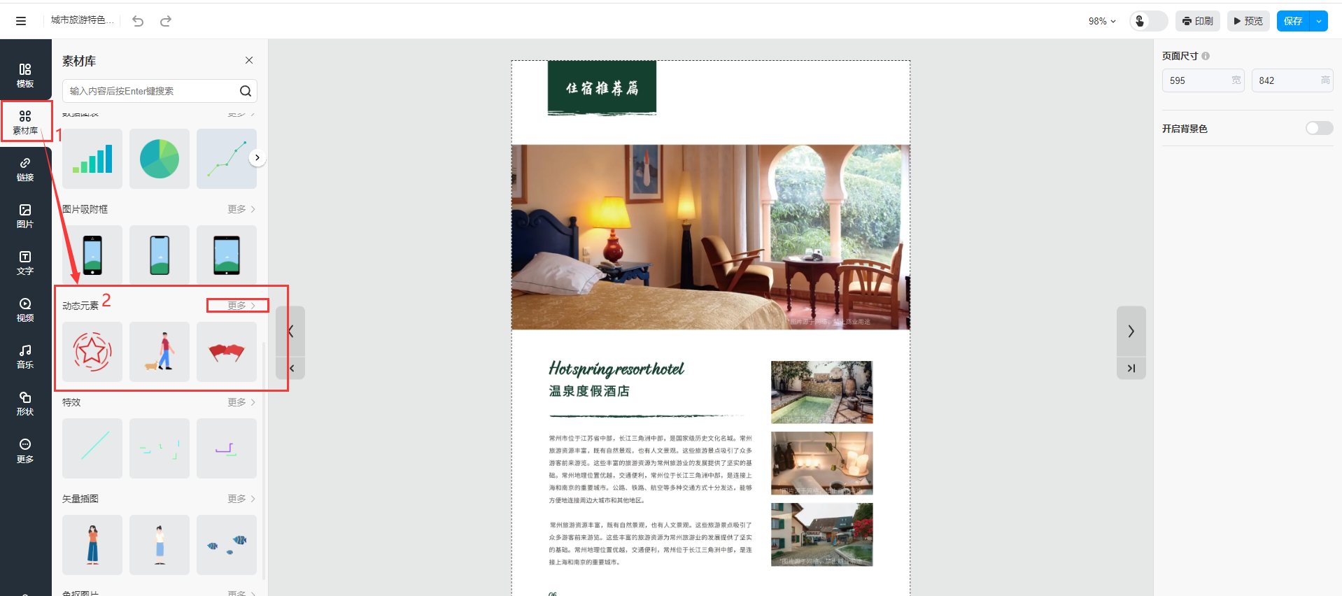 點擊【素材庫】,選擇【動態元素】,選擇你需要的動態元素,單擊或拖拽元素至畫布。