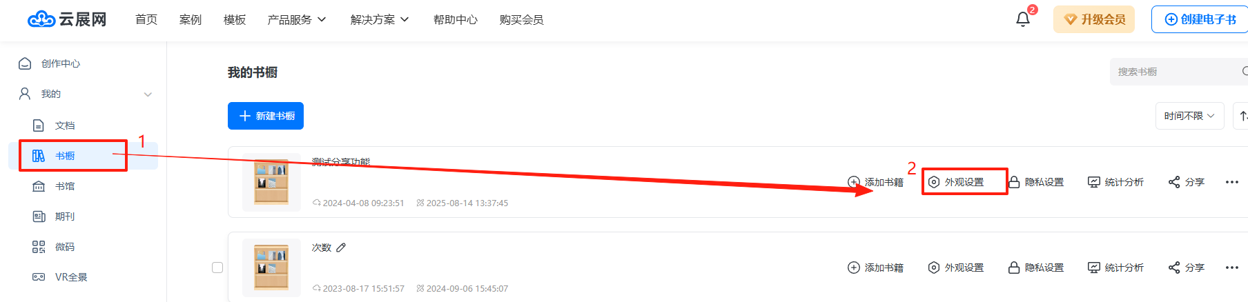 在【書櫥】頁面 ,點擊【外觀設(shè)置】進入