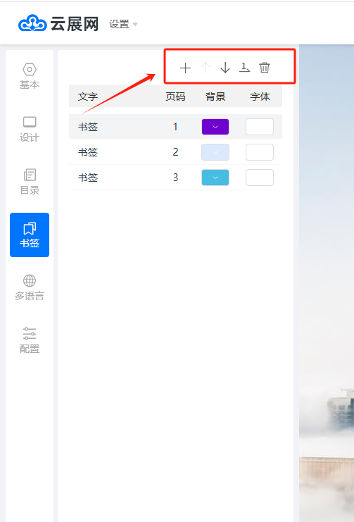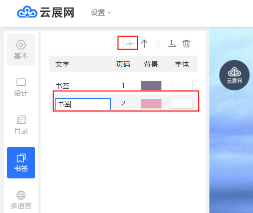 點擊【+】號添加書簽,并設置書簽的名稱、跳轉的頁面、背景顏色和字體