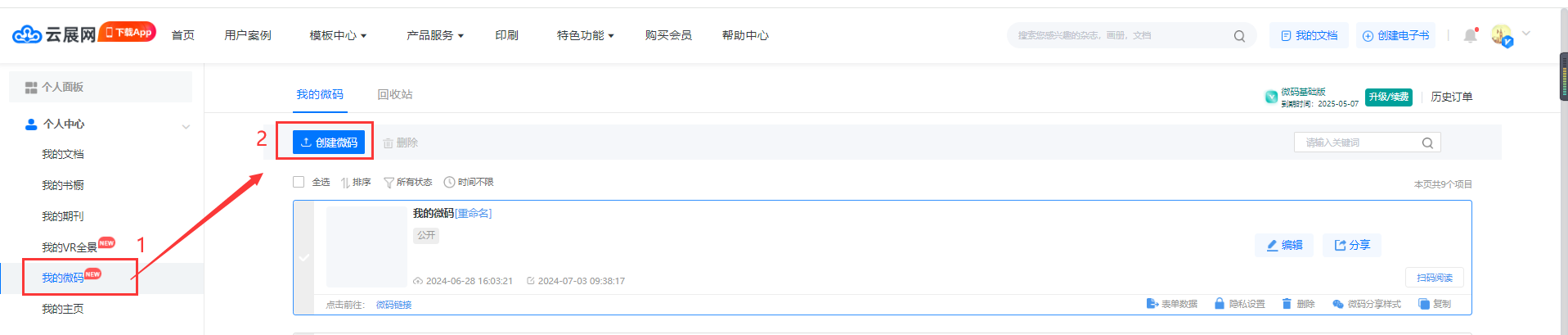 2、在【我的微碼】頁面,點擊【創(chuàng)建微碼】