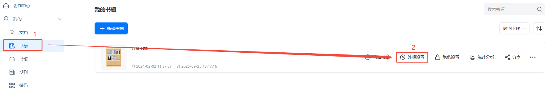 a)點擊【書櫥】找到對應書櫥,點擊【外觀設置】,進入管理書櫥界面。