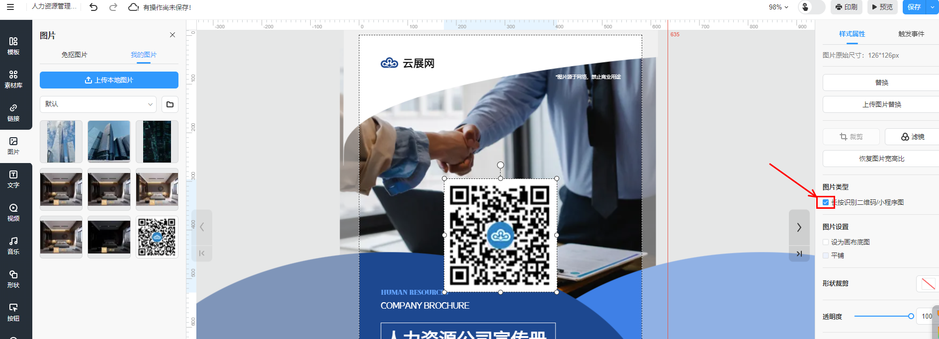 選中二維碼/小程序圖片,然后勾選【長按識別二維碼/小程序圖】