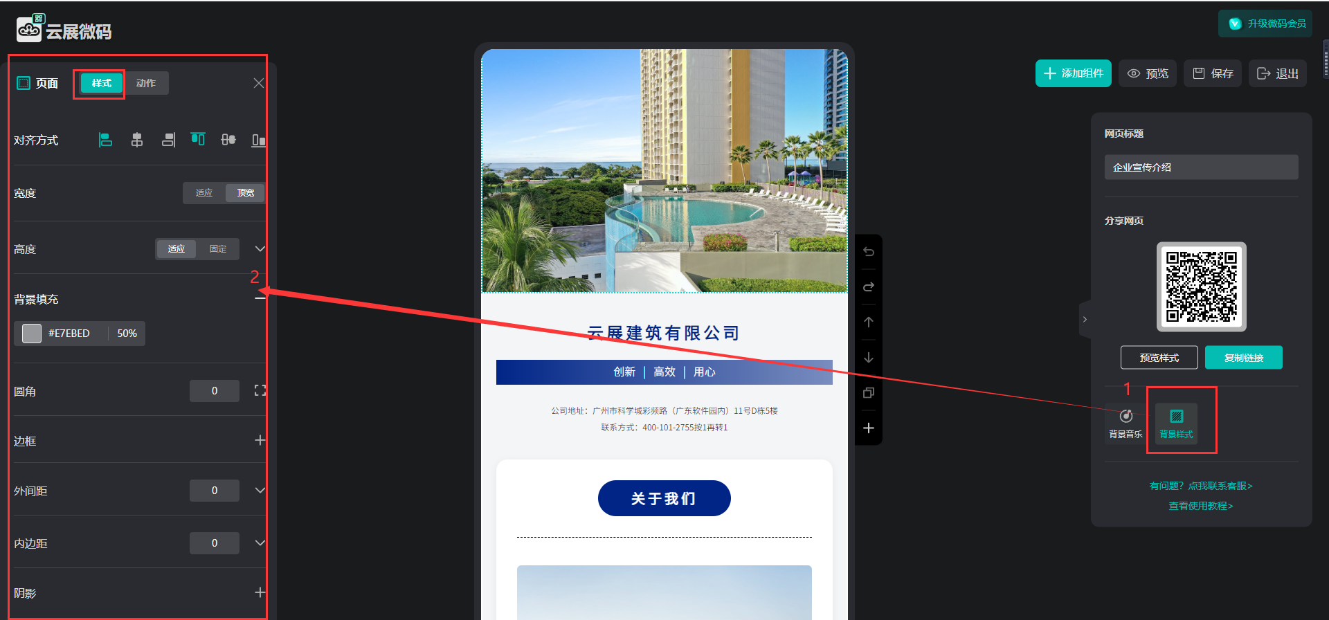背景樣式設(shè)置指的是調(diào)整微碼頁面布局,使頁面更加美觀,可以設(shè)置對齊方式、背景補(bǔ)充、內(nèi)外邊距等
