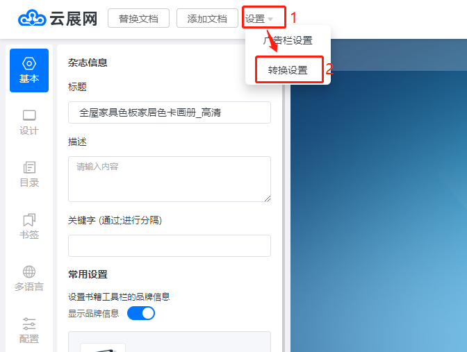 a)點擊左上角【設置】,然后點擊【轉換設置】。