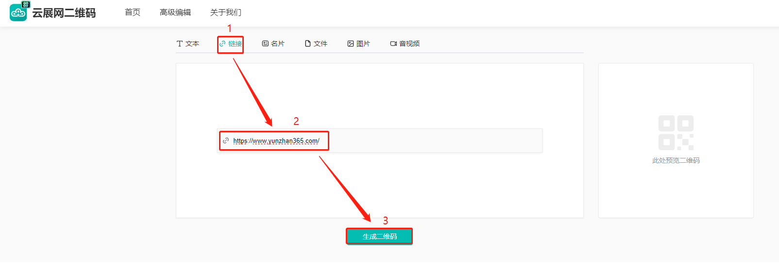 (1)點擊【鏈接】,下方輸入鏈接,點擊【生成二維碼】。