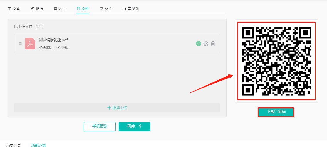 (1)點擊【文件】,然后點擊下方【上傳文件】上傳文件,點擊【生成二維碼】。
